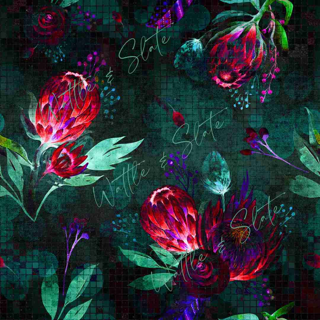 RETAIL Jewelled Protea LARGE SCALE on French Terry 0.65m REMNANT